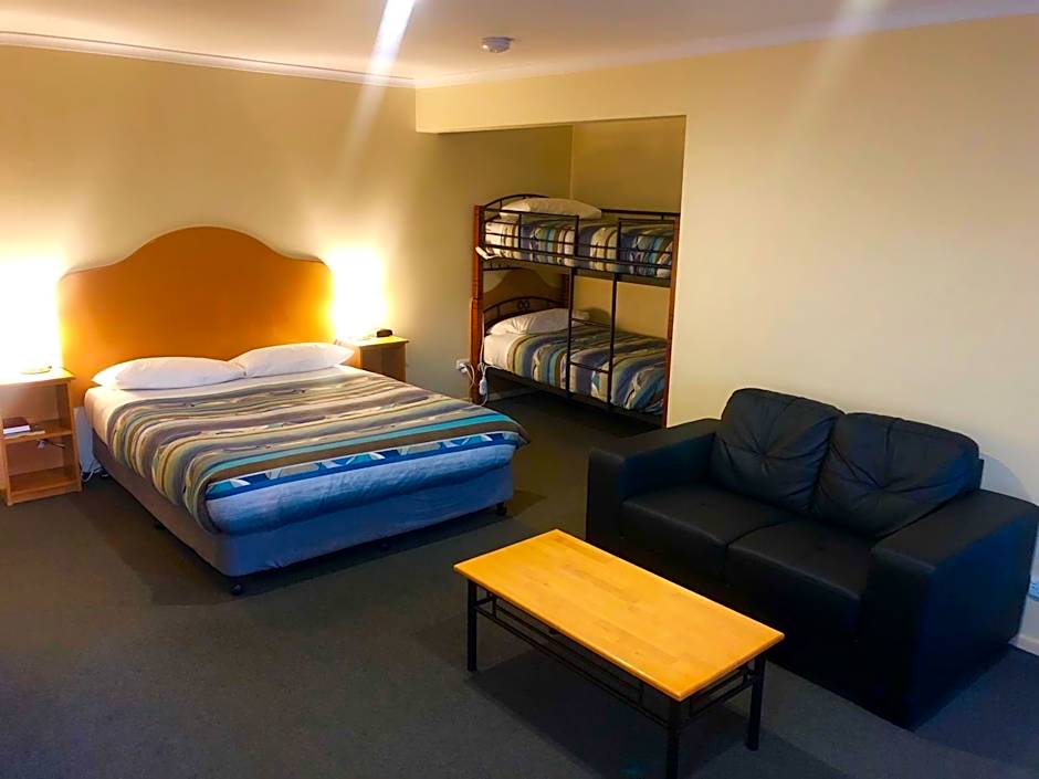Features a kitchenette with microwave, tea/coffee making facilities, toaster and kitchenware. The separate living area includes a TV.